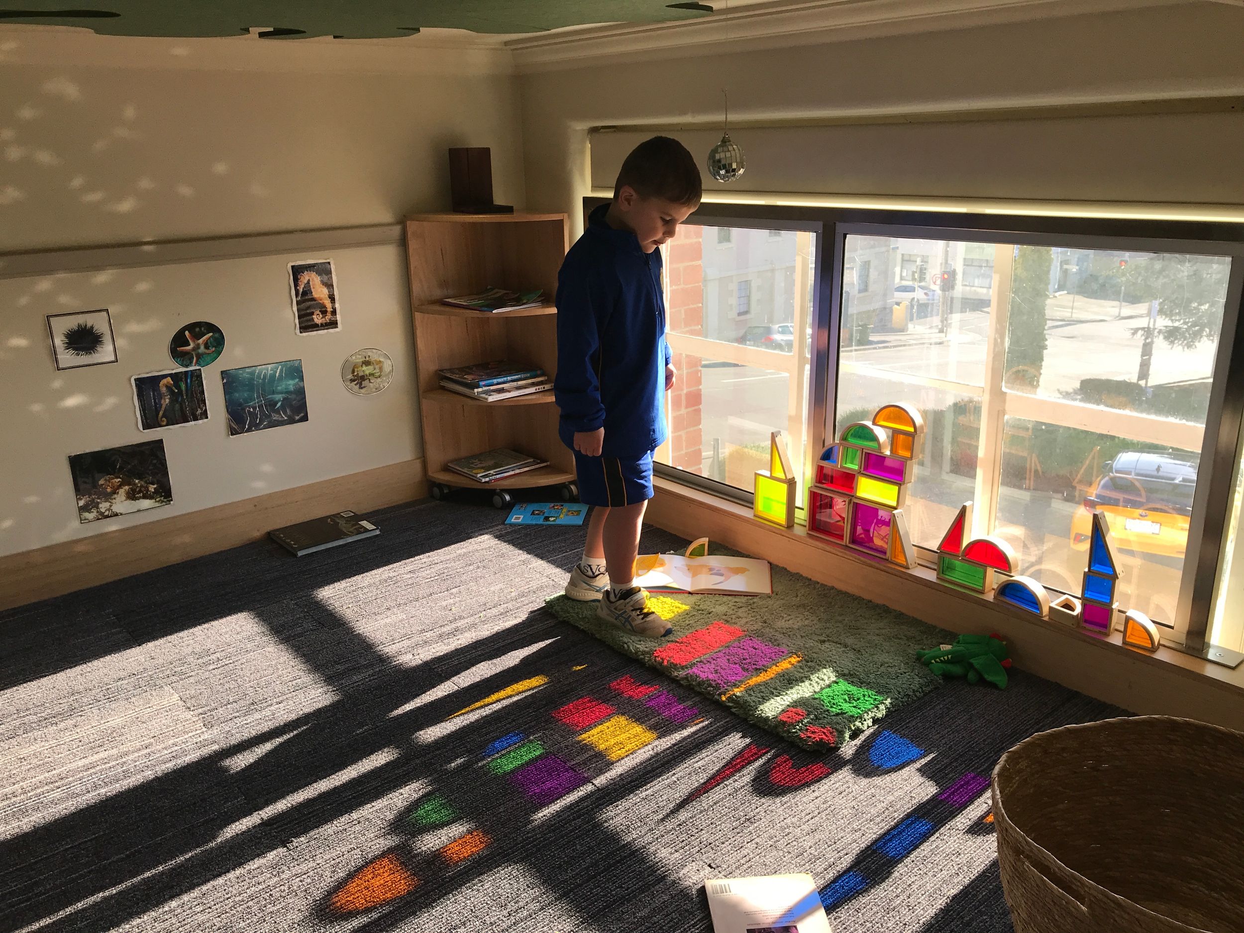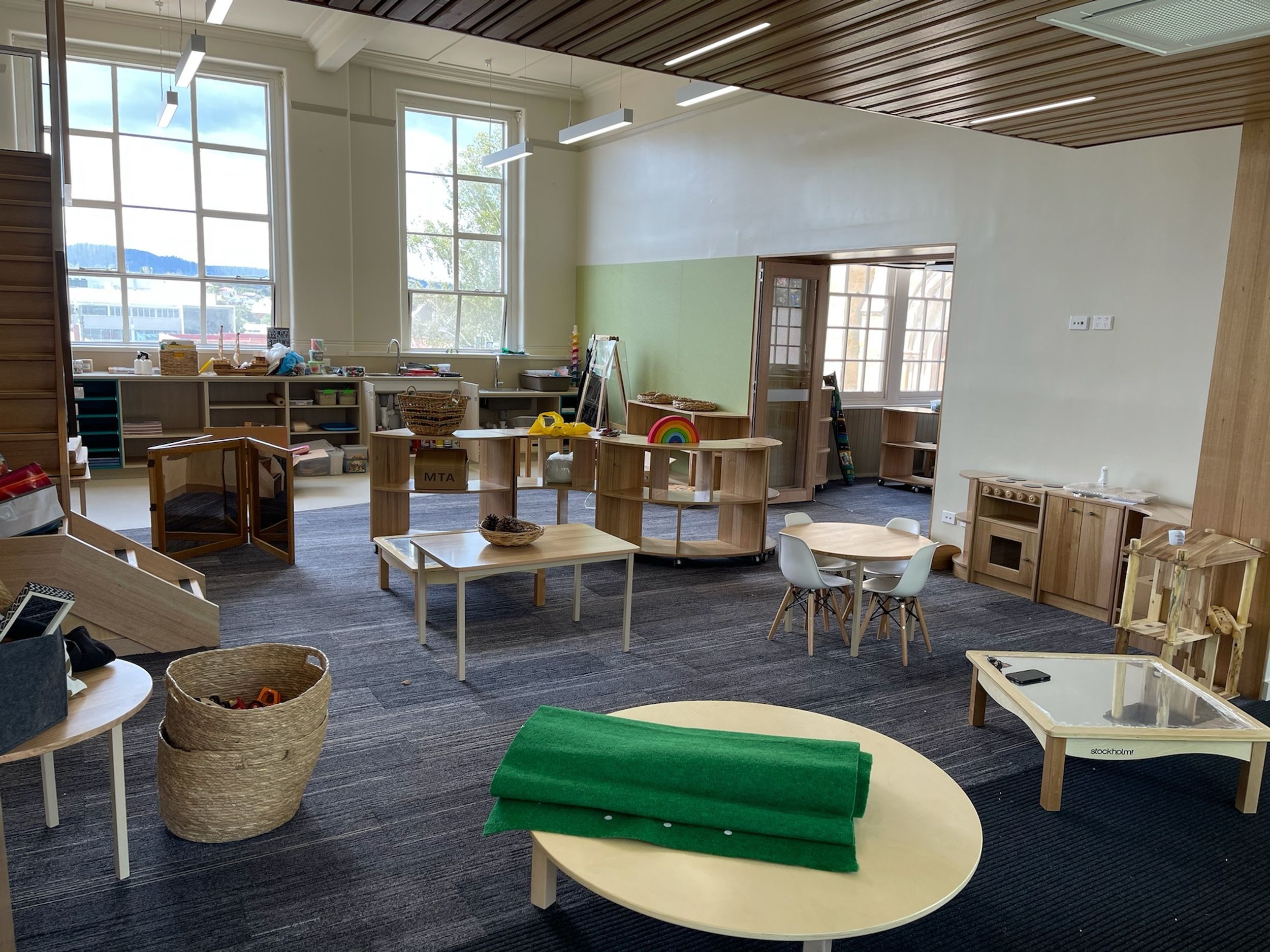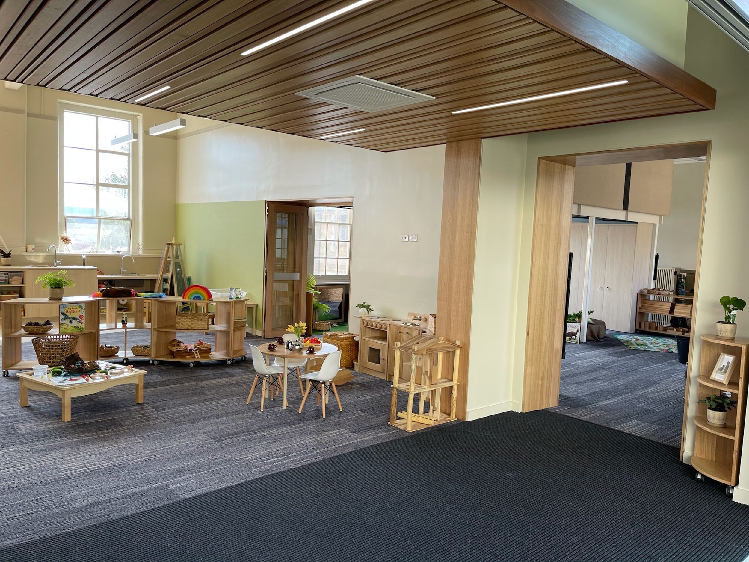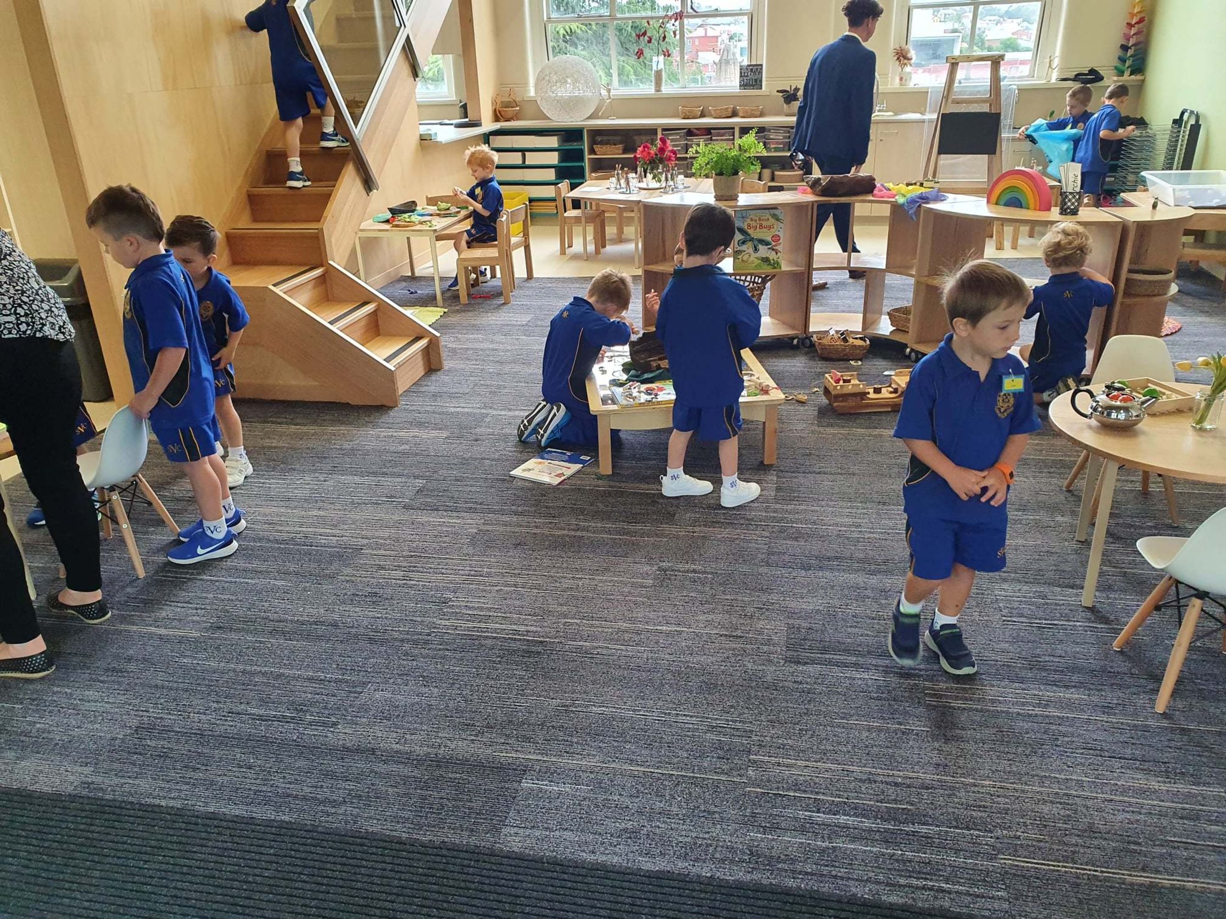 The classrooms are spacious, allowing for students to inquire, problem solve and reflect, and find joy in learning. Many stations of activities are set out to pique their interest and the upstairs 'cubby house' area provides an escape for quieter reflection and discovery.