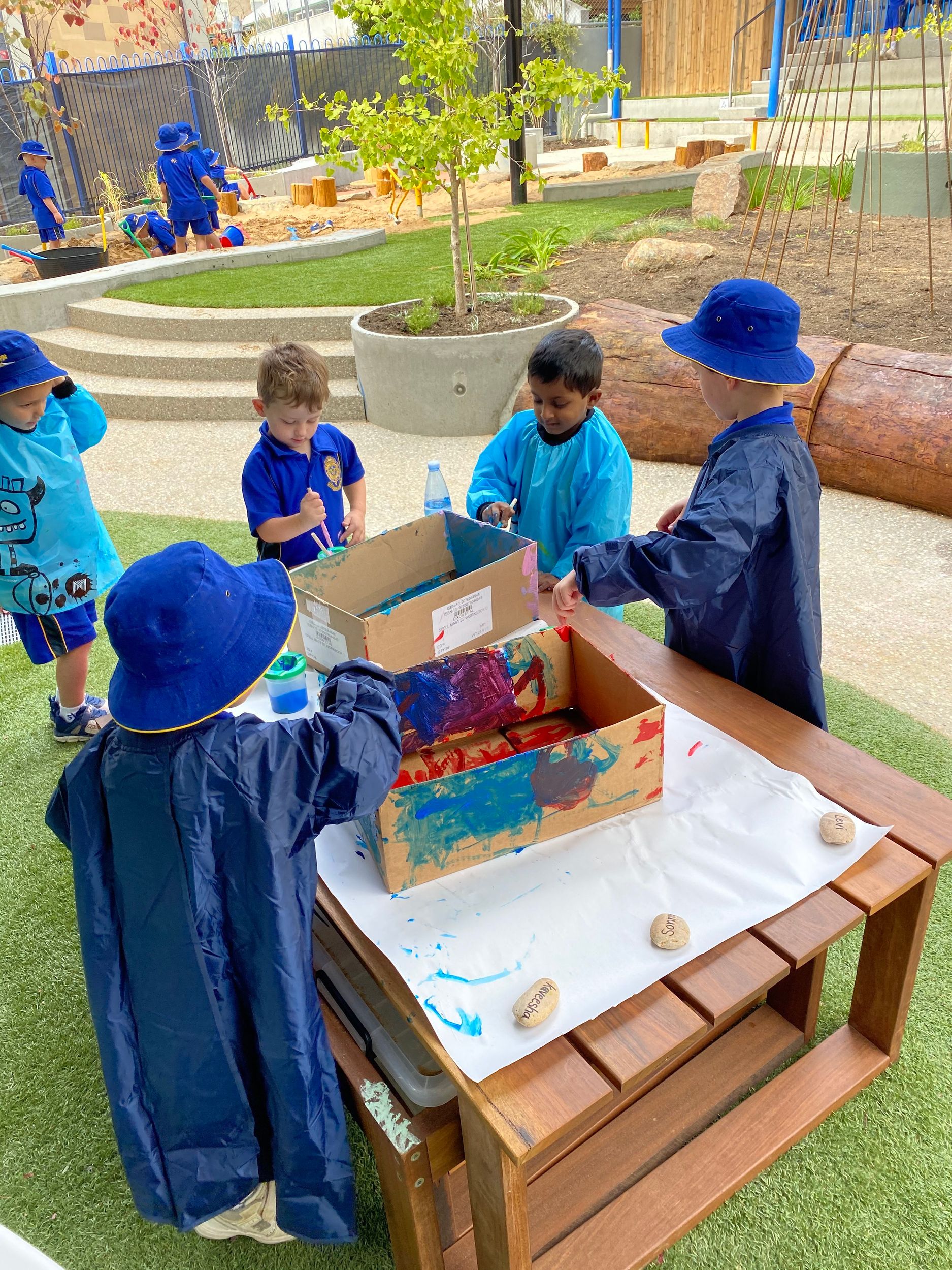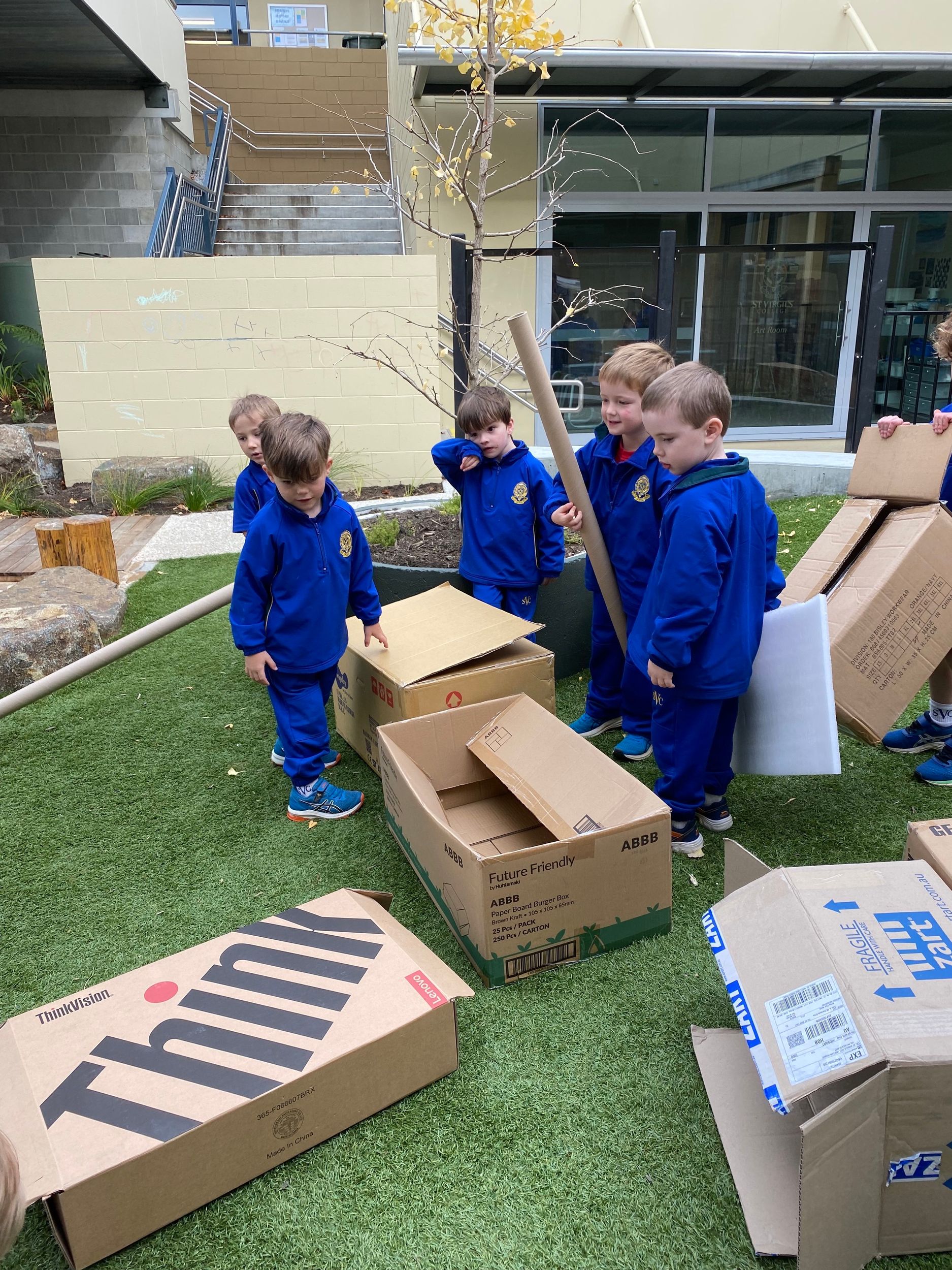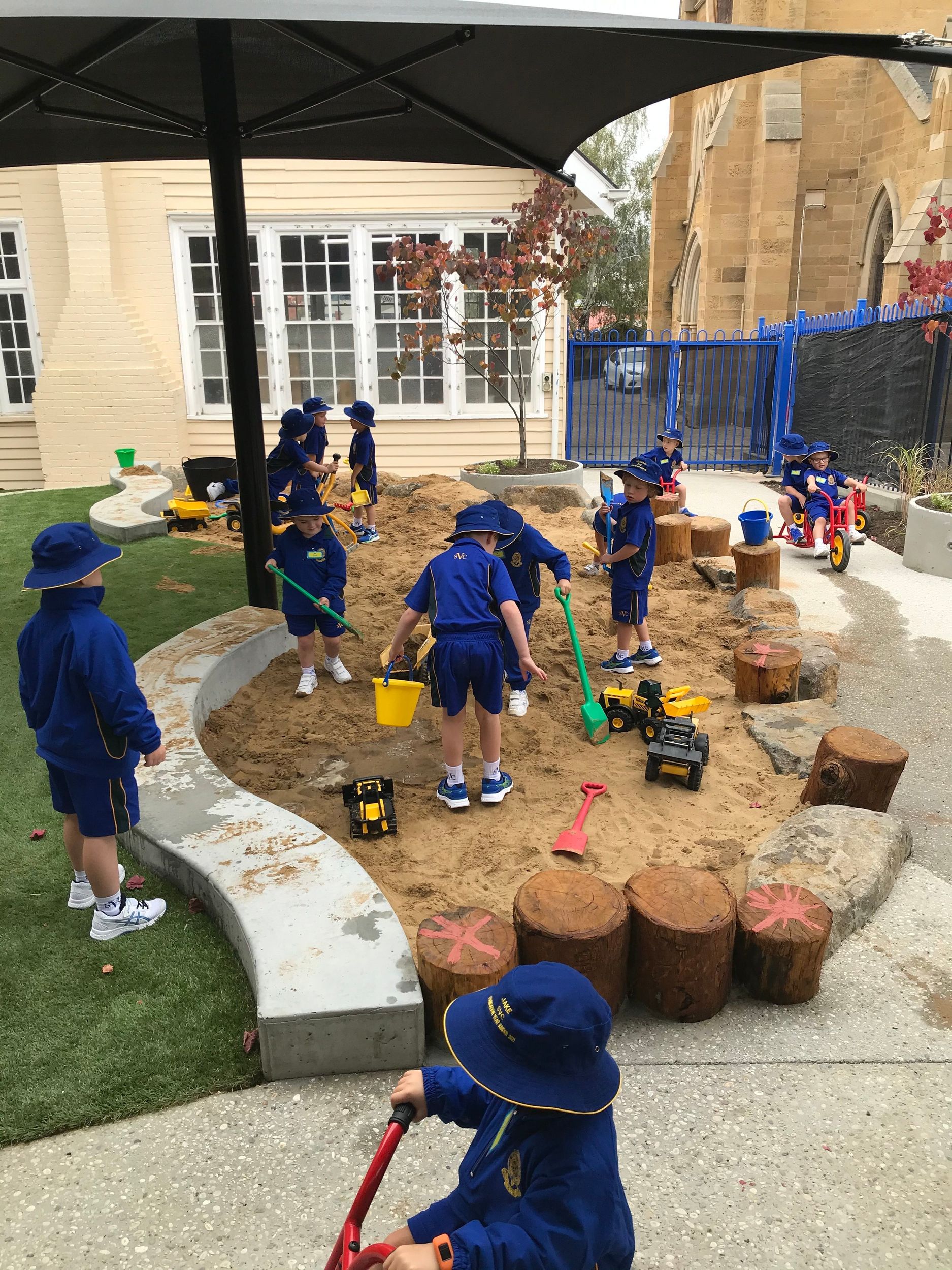 The purpose-built Centre is a modern space, designed with boys in mind. It includes sandpit with excavator, area to ride trikes, sturdy artificial grass, garden, and water pump and creek bed, which supports the St Virgil's Early Learning Philosophy and authentic play experiences. Students also regularly discover the College surrounds for bush play and attend the Austins Ferry campus to be further immersed in the natural environment.